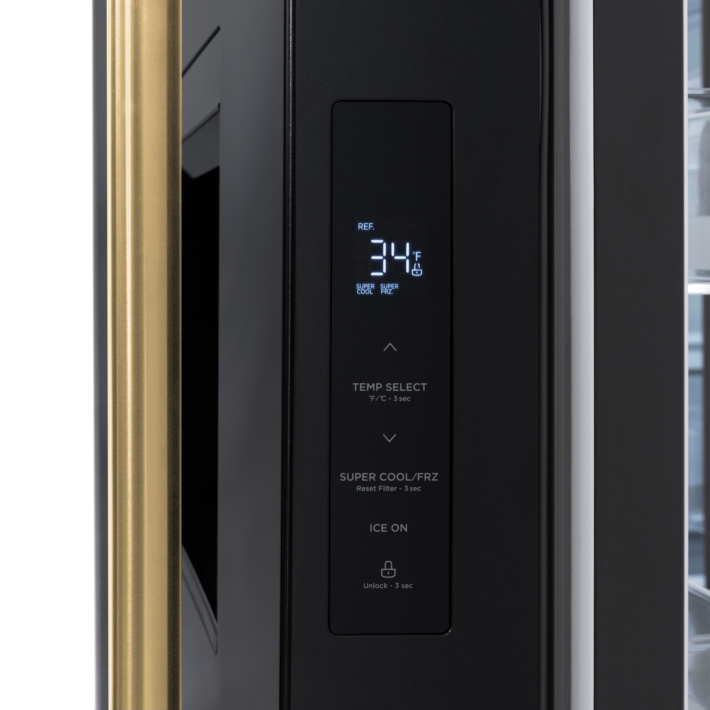 Digital Display – Set temperatures ranging from 34°F to 44°F in the fridge and -7°F to 7°F in the freezer and navigate menu options to change the appliance to vacation, sabbath, or eco modes with an ADA-accessible LED control panel on the fridge door